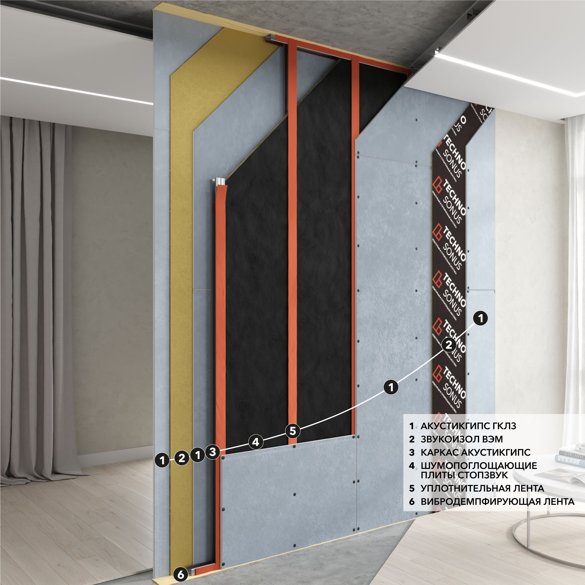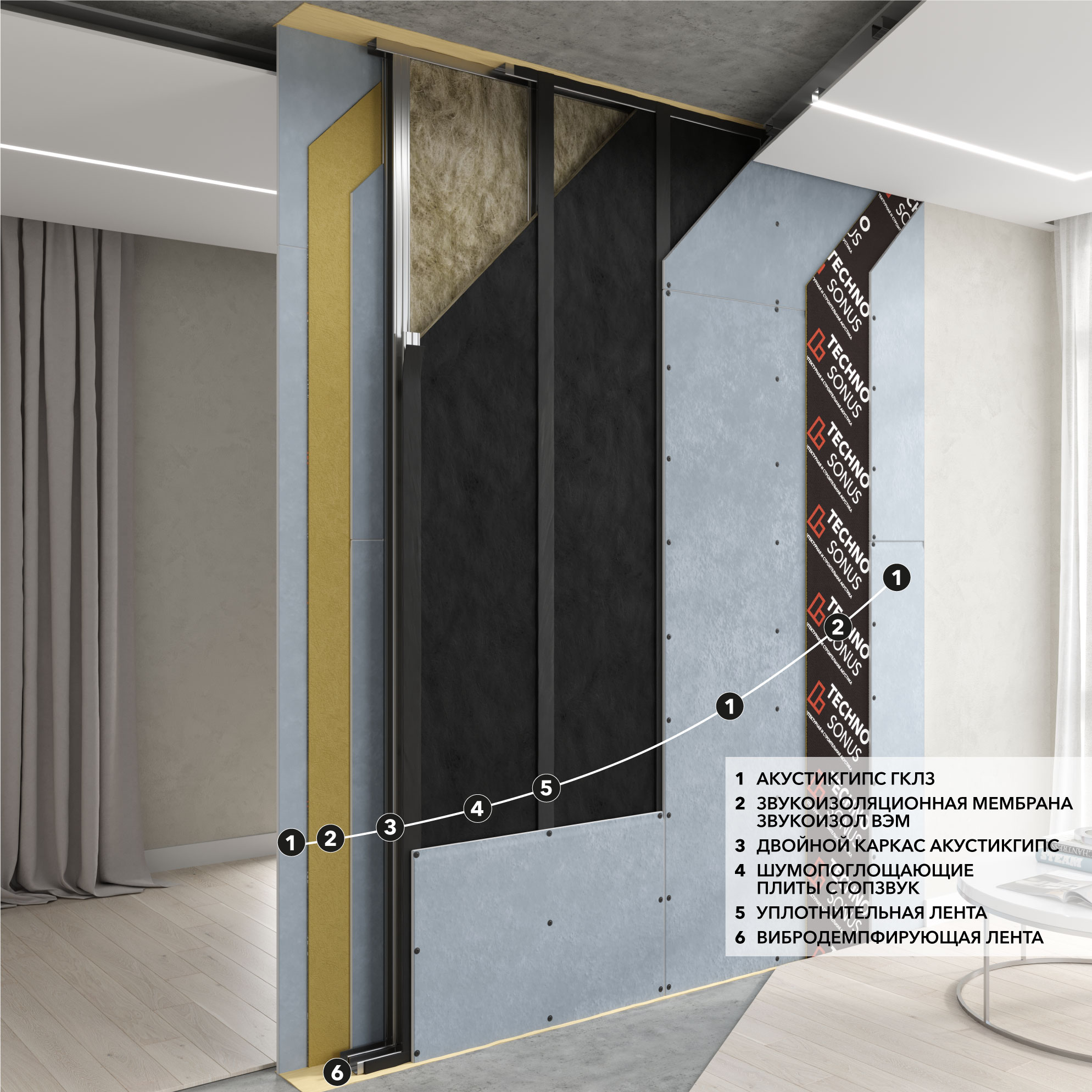В данном разделе приведены типовые схемы монтажа звукоизоляции перегородок с применением материала Звукоизол ВЭМ.